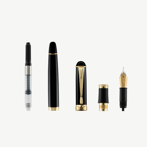 Pennans rena och harmoniska linjer skapar en elegant helhet där kropp och kork smälter samman i en tidlös design. Den gedigna metallkonstruktionen ger en behaglig tyngd och en stabil känsla i handen, samtidigt som den bidrar till ett sofistikerat uttryck. Som en klassisk reservoarpenna fylls den på med bläck och är utformad för ett jämnt och följsamt bläckflöde som ger en mjuk och precis skrivupplevelse, oavsett om den används till vardags, för anteckningar eller vid signering.